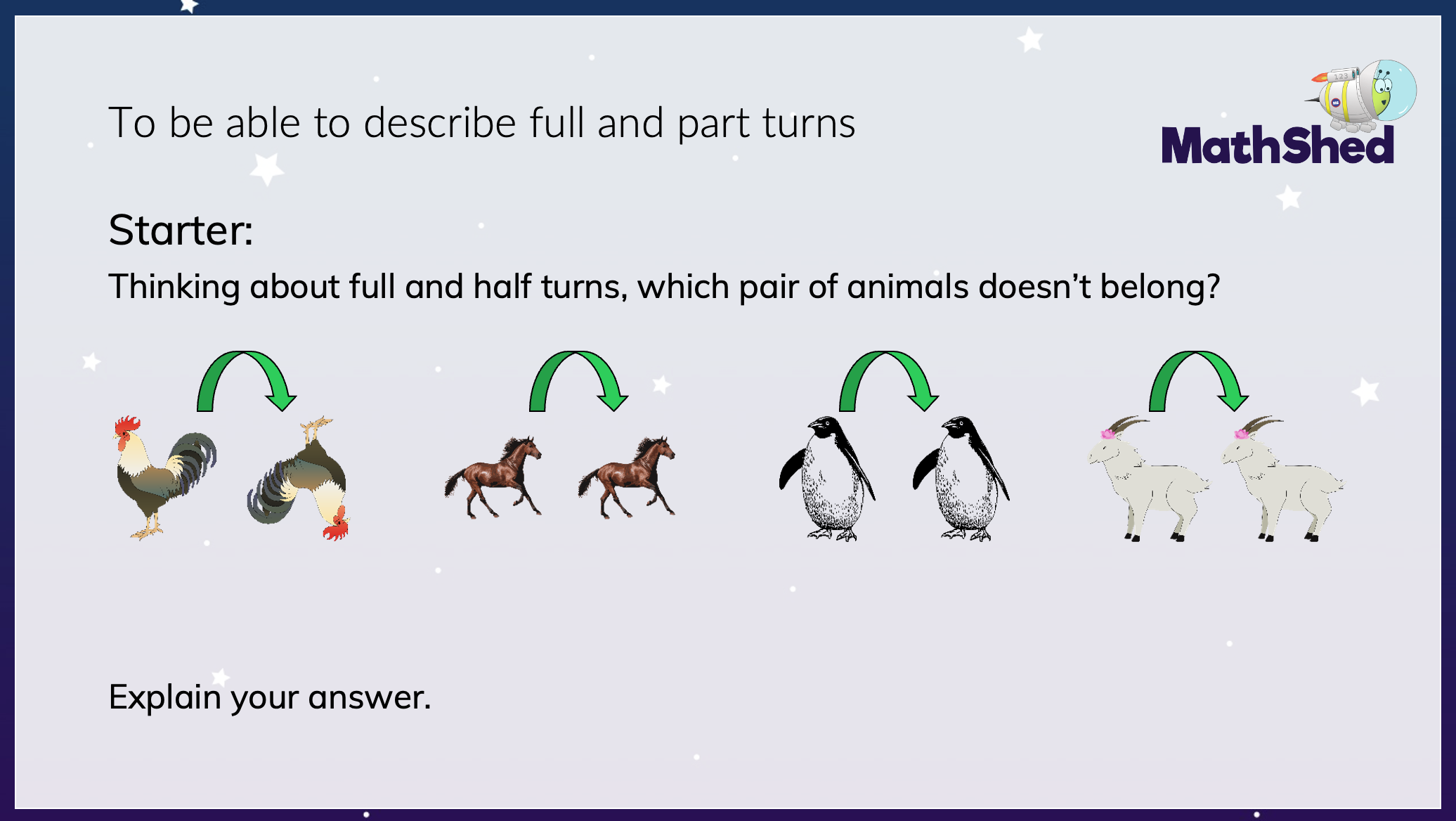 Stage 2 - Summer Block 4 - Position and Direction - Lesson 3 - To be able to describe full and part turns